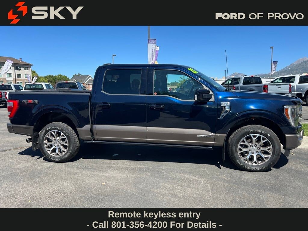 Experience the pinnacle of truck luxury in this F-150 King Ranch with rich Java leather interior. The innovative 3.5L PowerBoost hybrid V6 delivers impressive 430 horsepower and exceptional fuel economy through a 10-speed automatic, while offering 7.2kW Pro Power Onboard generator capability. With 50,485 miles and 4WD confidence, this King Ranch features premium leather, heated/ventilated seats, Unleashed sound system, and 12-inch SYNC 4 touchscreen.