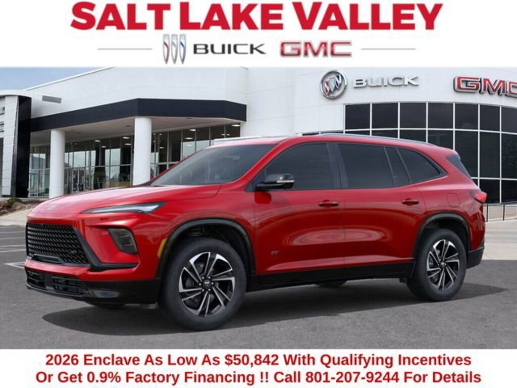2026 Buick Enclave Sport Touring 4D Sport Utility herry Red Tintcoat 2.5L DOHC FWD --- Please note that the final selling price does not include tax, tag, title, documentation fees, dealer-installed options, or pricing adjustments due to market demand. Financing through GM Financial is required for all discounts to be applied. Special finance offers may not be combined with some factory incentives. While we strive for accuracy, errors may occur, so please verify all information with a customer service representative. For the most accurate pricing, call us at (801) 265-1511 or visit our dealership in person. Prices and payments are subject to change based on manufacturer incentives. ... Sale Price may include dealer discount, $1750 - December Buick GMC Holiday Event Bonus Cash - Price includes $1,500 trade in allowance program for customers that own a 2018 or newer passenger car or truck with less than 80,000 miles and trade in their vehicle towards the purchase of a new 2025-2026 Buick or GMC. Some restrictions may apply. Contact dealer for details - Price includes $1,000 Down Payment Assistance. Must Finance with GM Financial