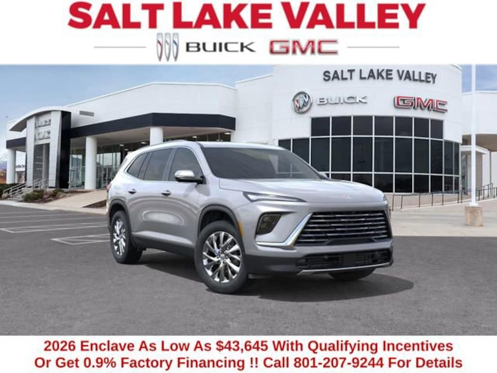 2026 Buick Enclave Preferred 4D Sport Utility moonstone gray metallic 2.5L DOHC FWD 20/27 City/Highway MPG --- Please note that the final selling price does not include tax, tag, title, documentation fees, dealer-installed options, or pricing adjustments due to market demand. Financing through GM Financial is required for all discounts to be applied. Special finance offers may not be combined with some factory incentives. While we strive for accuracy, errors may occur, so please verify all information with a customer service representative. For the most accurate pricing, call us at (801) 265-1511 or visit our dealership in person. Prices and payments are subject to change based on manufacturer incentives. ... Sale Price may include dealer discount, $1750 - December Buick GMC Holiday Event Bonus Cash - Price includes $1,500 trade in allowance program for customers that own a 2018 or newer passenger car or truck with less than 80,000 miles and trade in their vehicle towards the purchase of a new 2025-2026 Buick or GMC. Some restrictions may apply. Contact dealer for details - Price includes $1,000 Down Payment Assistance. Must Finance with GM Financial