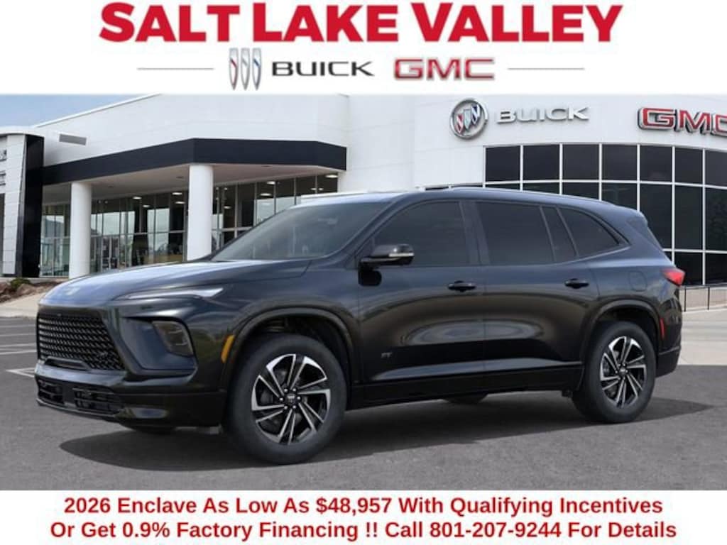 2026 Buick Enclave Sport Touring 4D Sport Utility ebony twilight metallic 2.5L DOHC FWD 20/27 City/Highway MPG --- Please note that the final selling price does not include tax, tag, title, documentation fees, dealer-installed options, or pricing adjustments due to market demand. Financing through GM Financial is required for all discounts to be applied. Special finance offers may not be combined with some factory incentives. While we strive for accuracy, errors may occur, so please verify all information with a customer service representative. For the most accurate pricing, call us at (801) 265-1511 or visit our dealership in person. Prices and payments are subject to change based on manufacturer incentives. ... Sale Price may include dealer discount, $1750 - December Buick GMC Holiday Event Bonus Cash - Price includes $1,500 trade in allowance program for customers that own a 2018 or newer passenger car or truck with less than 80,000 miles and trade in their vehicle towards the purchase of a new 2025-2026 Buick or GMC. Some restrictions may apply. Contact dealer for details - Price includes $1,000 Down Payment Assistance. Must Finance with GM Financial