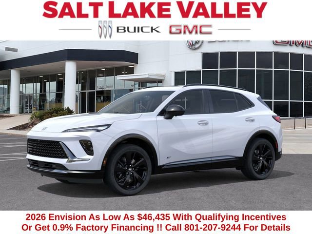 2026 Buick Envision Sport Touring 4D Sport Utility Iridescent White Tricoat 2.0L Turbocharged AWD 22/28 City/Highway MPG --- Please note that the final selling price does not include tax, tag, title, documentation fees, dealer-installed options, or pricing adjustments due to market demand. Financing through GM Financial is required for all discounts to be applied. Special finance offers may not be combined with some factory incentives. While we strive for accuracy, errors may occur, so please verify all information with a customer service representative. For the most accurate pricing, call us at (801) 265-1511 or visit our dealership in person. Prices and payments are subject to change based on manufacturer incentives. ... Sale Price may include dealer discount, $500 - Buick GMC Bonus Cash - Price includes $1,000 Down Payment Assistance. Must Finance with GM Financial Price includes $1,500 Trade-In Allowance for customers trading a 2019 or newer passenger car or truck with under 80,000 miles toward a new 2025 2026 Buick or GMC. Branded or salvage title vehicles do not qualify. Some restrictions apply. See dealer for details.