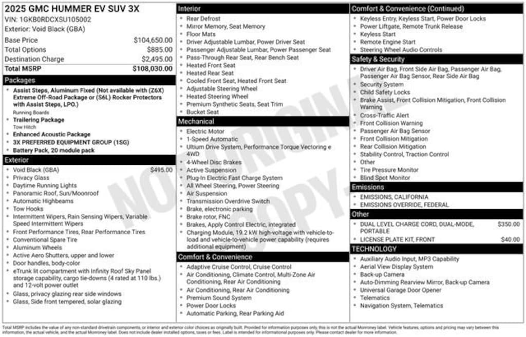 2025 GMC Hummer EV SUV 3X 4D Sport Utility Void Black Electric Motor 4WD 59/48 City/Highway MPG --- Please note that the final selling price does not include tax, tag, title, documentation fees, dealer-installed options, or pricing adjustments due to market demand. Financing through GM Financial is required for all discounts to be applied. Special finance offers may not be combined with some factory incentives. While we strive for accuracy, errors may occur, so please verify all information with a customer service representative. For the most accurate pricing, call us at (801) 265-1511 or visit our dealership in person. Prices and payments are subject to change based on manufacturer incentives. - Price includes $1,500 trade in allowance program for customers that own a 2018 or newer passenger car or truck with less than 80,000 miles and trade in their vehicle towards the purchase of a new 2025-2026 Buick or GMC. Some restrictions may apply. Contact dealer for details - Price includes $2,000 Down Payment Assistance. Must Finance with GM Financial