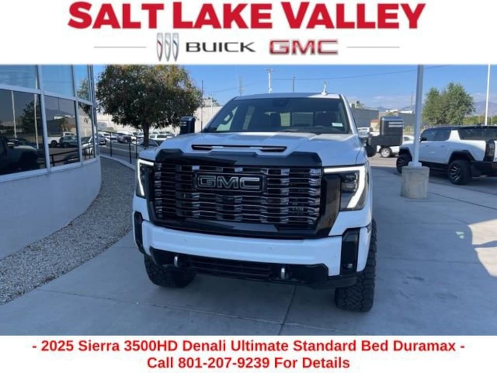 2025 GMC Sierra 3500HD Denali Ultimate 4D Crew Cab Summit White Duramax 6.6L V8 Turbodiesel 4WD --- Please note that the final selling price does not include tax, tag, title, documentation fees, dealer-installed options, or pricing adjustments due to market demand. Financing through GM Financial is required for all discounts to be applied. Special finance offers may not be combined with some factory incentives. While we strive for accuracy, errors may occur, so please verify all information with a customer service representative. For the most accurate pricing, call us at (801) 265-1511 or visit our dealership in person. Prices and payments are subject to change based on manufacturer incentives. ... Sale Price may include dealer discount, $1000 - Buick & GMC Consumer Cash Program - Price includes $1,000 Down Payment Assistance. Must Finance with GM Financial - - Price includes $1,500 trade in allowance program for customers that own a 2018 or newer passenger car or truck with less than 80,000 miles and trade in their vehicle towards the purchase of a new 2025-2026 Buick or GMC. Some restrictions may apply. Contact dealer for details