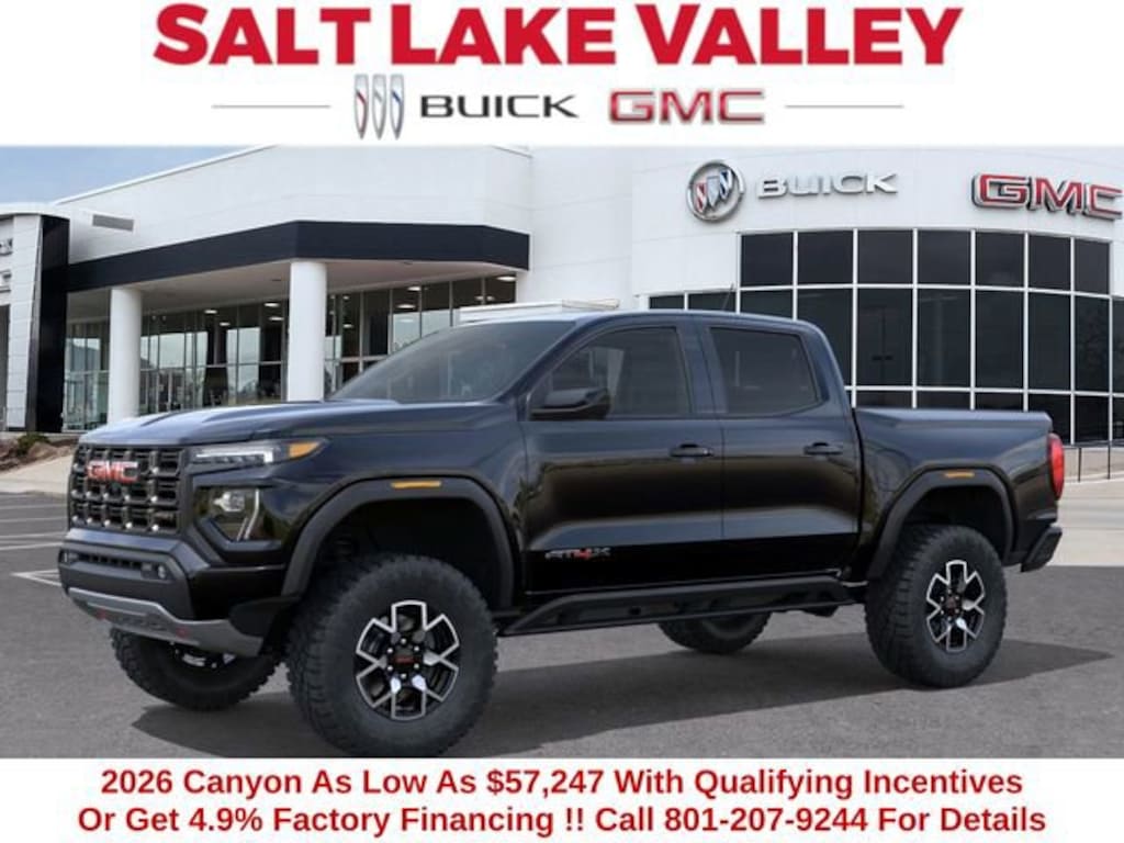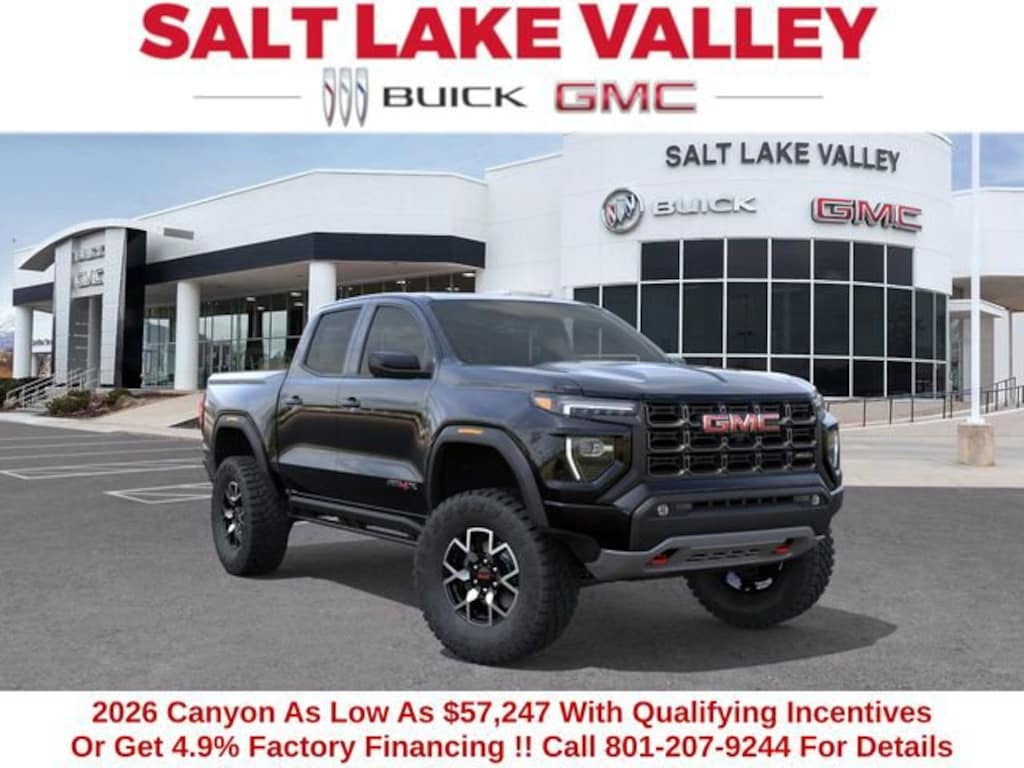 Take on every drive with confidence in the new GMC Canyon from Salt Lake Valley Buick GMC! Built for strength, style, and advanced capability, GMC delivers the perfect mix of power and precision. From city streets to Utah backroads, the Canyon is ready for anything. Contact us at 801-265-1511 today to schedule your test drive ! ---2026 GMC Canyon AT4X 4D Crew Cab Onyx Black 2.7L I4 Turbocharged DOHC 16V LEV3-SULEV30 310hp 4WD --- Please note that the final selling price does not include tax, tag, title, documentation fees, dealer-installed options, or pricing adjustments due to market demand. Financing through GM Financial is required for all discounts to be applied. Special finance offers may not be combined with some factory incentives. While we strive for accuracy, errors may occur, so please verify all information with a customer service representative. For the most accurate pricing, call us at (801) 265-1511 or visit our dealership in person. Prices and payments are subject to change based on manufacturer incentives.