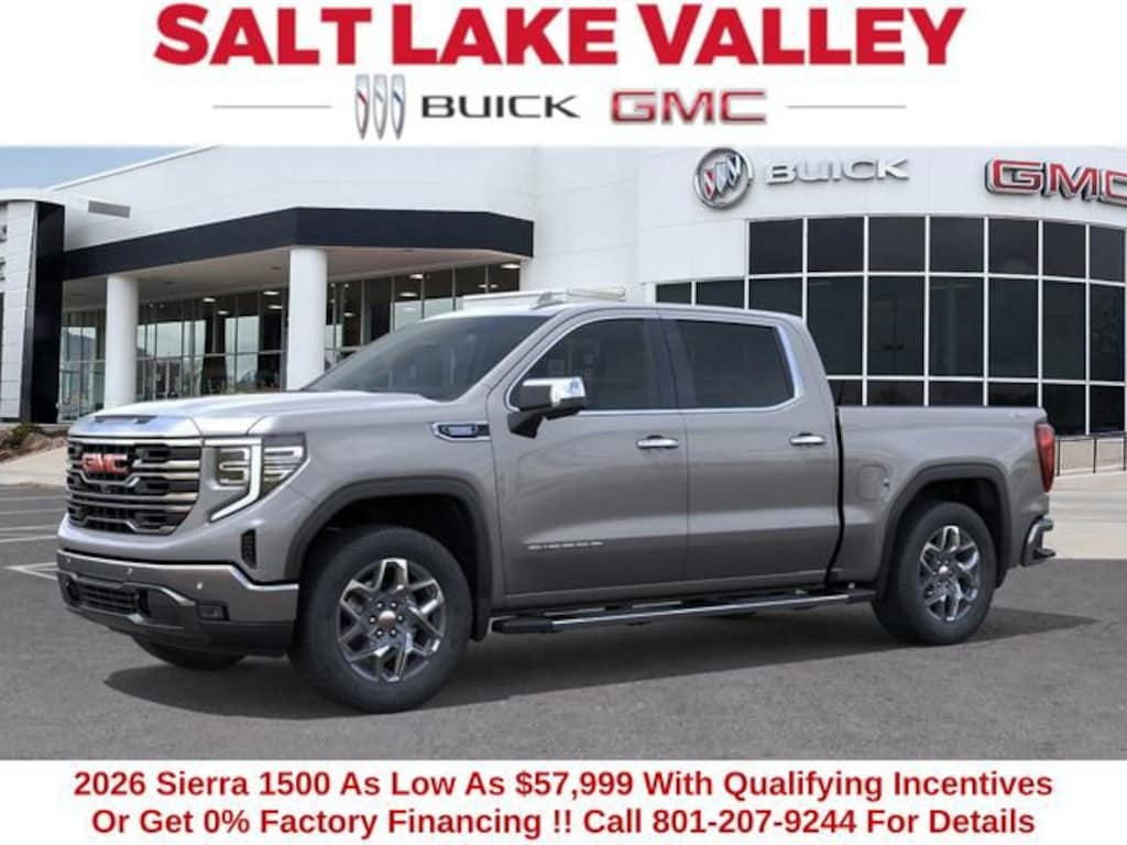 2026 GMC Sierra 1500 SLT 4D Crew Cab Sterling Metallic 3.0L I6 4WD 22/26 City/Highway MPG --- Please note that the final selling price does not include tax, tag, title, documentation fees, dealer-installed options, or pricing adjustments due to market demand. Financing through GM Financial is required for all discounts to be applied. Special finance offers may not be combined with some factory incentives. While we strive for accuracy, errors may occur, so please verify all information with a customer service representative. For the most accurate pricing, call us at (801) 265-1511 or visit our dealership in person. Prices and payments are subject to change based on manufacturer incentives. ... Sale Price may include dealer discount, $1500 - Buick & GMC Consumer Cash Program $250 - December Buick GMC Holiday Event Bonus Cash $500 - GM Bonus Cash - Price includes $1,500 trade in allowance program for customers that own a 2018 or newer passenger car or truck with less than 80,000 miles and trade in their vehicle towards the purchase of a new 2025-2026 Buick or GMC. Some restrictions may apply. Contact dealer for details - Price includes $2,000 Down Payment Assistance. Must Finance with GM Financial