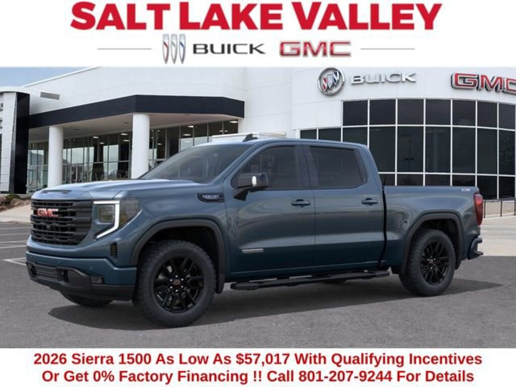 2026 GMC Sierra 1500 Elevation 4D Crew Cab Downpour Metallic EcoTec3 5.3L V8 4WD --- Please note that the final selling price does not include tax, tag, title, documentation fees, dealer-installed options, or pricing adjustments due to market demand. Financing through GM Financial is required for all discounts to be applied. Special finance offers may not be combined with some factory incentives. While we strive for accuracy, errors may occur, so please verify all information with a customer service representative. For the most accurate pricing, call us at (801) 265-1511 or visit our dealership in person. Prices and payments are subject to change based on manufacturer incentives. ... Sale Price may include dealer discount, $1500 - Buick & GMC Consumer Cash Program $1500 - GM Bonus Cash $250 - December Buick GMC Holiday Event Bonus Cash - Price includes $1,500 trade in allowance program for customers that own a 2018 or newer passenger car or truck with less than 80,000 miles and trade in their vehicle towards the purchase of a new 2025-2026 Buick or GMC. Some restrictions may apply. Contact dealer for details - Price includes $2,000 Down Payment Assistance. Must Finance with GM Financial