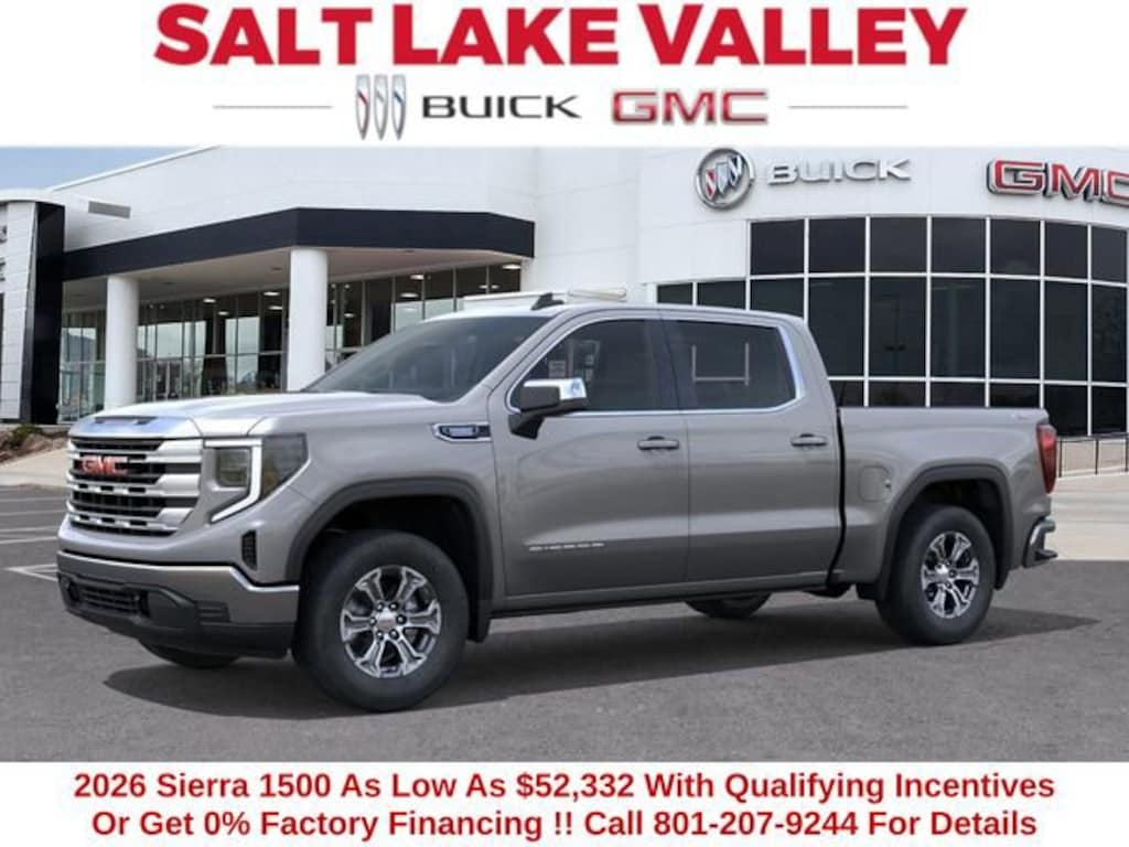 2026 GMC Sierra 1500 SLE 4D Crew Cab Sterling Metallic 3.0L I6 4WD 22/26 City/Highway MPG --- Please note that the final selling price does not include tax, tag, title, documentation fees, dealer-installed options, or pricing adjustments due to market demand. Financing through GM Financial is required for all discounts to be applied. Special finance offers may not be combined with some factory incentives. While we strive for accuracy, errors may occur, so please verify all information with a customer service representative. For the most accurate pricing, call us at (801) 265-1511 or visit our dealership in person. Prices and payments are subject to change based on manufacturer incentives. ... Sale Price may include dealer discount, $1500 - Buick & GMC Consumer Cash Program $250 - December Buick GMC Holiday Event Bonus Cash $500 - GM Bonus Cash - Price includes $1,500 trade in allowance program for customers that own a 2018 or newer passenger car or truck with less than 80,000 miles and trade in their vehicle towards the purchase of a new 2025-2026 Buick or GMC. Some restrictions may apply. Contact dealer for details - Price includes $2,000 Down Payment Assistance. Must Finance with GM Financial