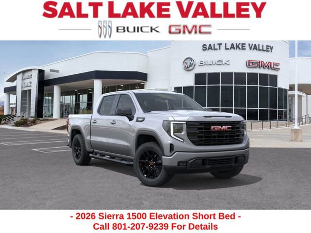 2026 GMC Sierra 1500 Elevation 4D Crew Cab Sterling Metallic 2.7L I4 Turbocharged DOHC 16V LEV3-SULEV30 310hp 4WD --- Please note that the final selling price does not include tax, tag, title, documentation fees, dealer-installed options, or pricing adjustments due to market demand. Financing through GM Financial is required for all discounts to be applied. Special finance offers may not be combined with some factory incentives. While we strive for accuracy, errors may occur, so please verify all information with a customer service representative. For the most accurate pricing, call us at (801) 265-1511 or visit our dealership in person. Prices and payments are subject to change based on manufacturer incentives. - Price includes $1,500 trade in allowance program for customers that own a 2018 or newer passenger car or truck with less than 80,000 miles and trade in their vehicle towards the purchase of a new 2025-2026 Buick or GMC. Some restrictions may apply. Contact dealer for details - Price includes $1,000 Down Payment Assistance. Must Finance with GM Financial