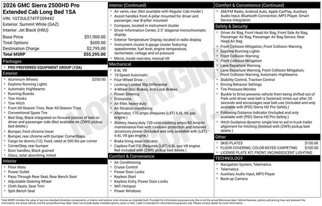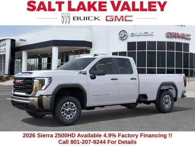 2026 GMC Sierra 2500HD Pro Double Cab Summit White 6.6L V8 4WD --- Please note that the final selling price does not include tax, tag, title, documentation fees, dealer-installed options, or pricing adjustments due to market demand. Financing through GM Financial is required for all discounts to be applied. Special finance offers may not be combined with some factory incentives. While we strive for accuracy, errors may occur, so please verify all information with a customer service representative. For the most accurate pricing, call us at (801) 265-1511 or visit our dealership in person. Prices and payments are subject to change based on manufacturer incentives. ... Sale Price may include dealer discount, $1000 - Buick & GMC Consumer Cash Program
