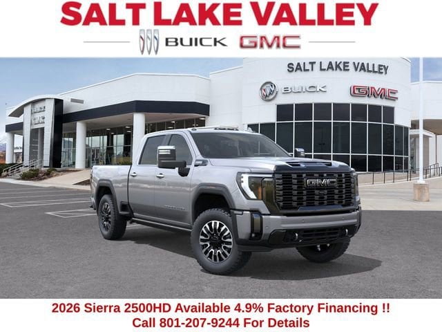 2026 GMC Sierra 2500HD Denali Ultimate 4D Crew Cab Sterling Metallic Duramax 6.6L V8 Turbodiesel 4WD --- Please note that the final selling price does not include tax, tag, title, documentation fees, dealer-installed options, or pricing adjustments due to market demand. Financing through GM Financial is required for all discounts to be applied. Special finance offers may not be combined with some factory incentives. While we strive for accuracy, errors may occur, so please verify all information with a customer service representative. For the most accurate pricing, call us at (801) 265-1511 or visit our dealership in person. Prices and payments are subject to change based on manufacturer incentives. ... Sale Price may include dealer discount, $1000 - Buick & GMC Consumer Cash Program