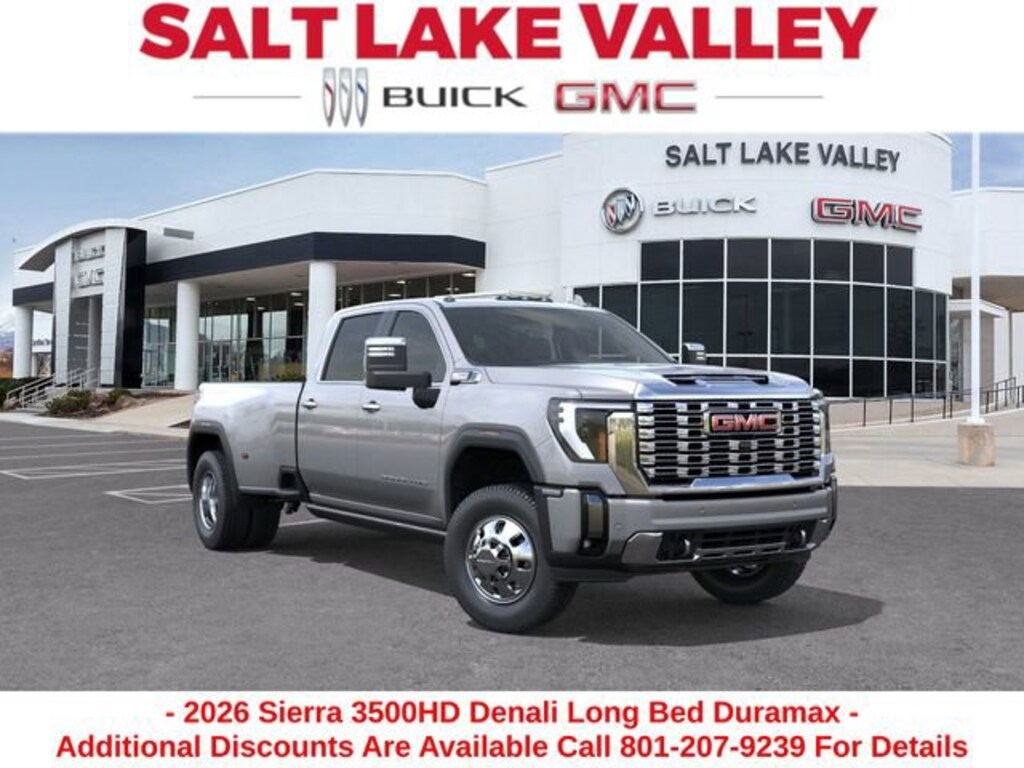 2026 GMC Sierra 3500HD Denali 4D Crew Cab Sterling Metallic Duramax 6.6L V8 Turbodiesel 4WD 10-Speed Automatic Please note that the final selling price does not include tax, tag, title, documentation fees, dealer-installed options, or pricing adjustments due to market demand. Financing through GM Financial is required for all discounts to be applied. Special finance offers may not be combined with some factory incentives. While we strive for accuracy, errors may occur, so please verify all information with a customer service representative. For the most accurate pricing, call us at (801) 265-1511 or visit our dealership in person. Prices and payments are subject to change based on manufacturer incentives. ... Sale Price may include dealer discount, $500 - Buick & GMC Consumer Cash Program