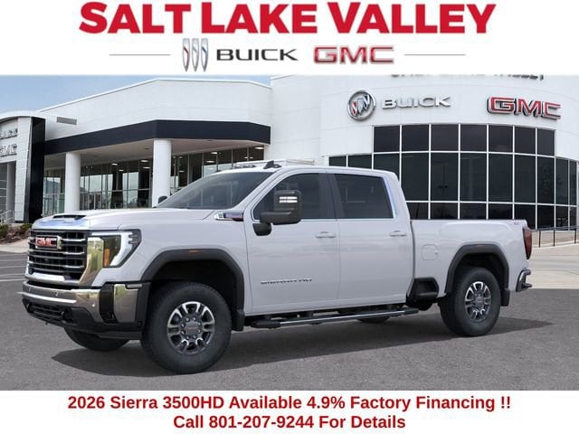 2026 GMC Sierra 3500HD SLE 4D Crew Cab Summit White Duramax 6.6L V8 Turbodiesel 4WD --- Please note that the final selling price does not include tax, tag, title, documentation fees, dealer-installed options, or pricing adjustments due to market demand. Financing through GM Financial is required for all discounts to be applied. Special finance offers may not be combined with some factory incentives. While we strive for accuracy, errors may occur, so please verify all information with a customer service representative. For the most accurate pricing, call us at (801) 265-1511 or visit our dealership in person. Prices and payments are subject to change based on manufacturer incentives. ... Sale Price may include dealer discount, $1000 - Buick & GMC Consumer Cash Program