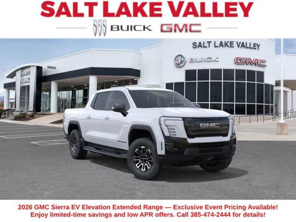 2026 GMC Sierra EV Elevation 4D Crew Cab Summit White Electric ZEV 645hp AWD 70/59 City/Highway MPG --- Please note that the final selling price does not include tax, tag, title, documentation fees, dealer-installed options, or pricing adjustments due to market demand. Financing through GM Financial is required for all discounts to be applied. Special finance offers may not be combined with some factory incentives. While we strive for accuracy, errors may occur, so please verify all information with a customer service representative. For the most accurate pricing, call us at (801) 265-1511 or visit our dealership in person. Prices and payments are subject to change based on manufacturer incentives. - Price includes $1,500 trade in allowance program for customers that own a 2018 or newer passenger car or truck with less than 80,000 miles and trade in their vehicle towards the purchase of a new 2025-2026 Buick or GMC. Some restrictions may apply. Contact dealer for details - Price includes $2,000 Down Payment Assistance. Must Finance with GM Financial
