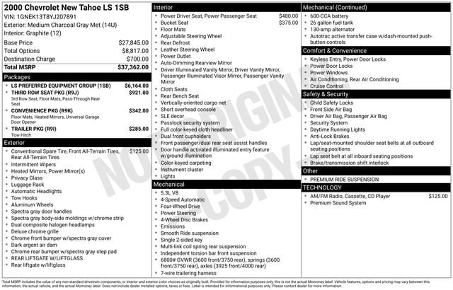 Sold AS IS ,Runs mechanic special!!Turn every drive into something special with this Chevrolet Tahoe from Salt Lake Valley Chevrolet! Designed for comfort, performance, and style, this vehicle comes fully equipped with modern technology and convenience features you'll love. Plus, enjoy a $1,000 finance savings, already included in the sale price, when you finance through one of our trusted lending partners. If you're shopping for used cars in Salt Lake City, or searching for the perfect SUV, truck, or sedan, this Chevrolet Tahoe delivers the dependability and value you're looking for. It's the ideal match for your lifestyle - ready for everything from mountain adventures to city commutes. Visit Salt Lake Valley Chevrolet today and see why so many Utah drivers trust us for great deals on quality pre-owned vehicles. Explore our inventory online at www.slvchevy.com or call 801-969-8221 to schedule your test drive today! This impressive vehicle includes Trailer Package (Trailer Hitch Platform and Transmission Oil Cooler), 3.73 Axle Ratio, 4-Wheel Disc Brakes, 8 Speakers, ABS brakes, AM/FM radio, Bumpers: chrome, Cargo Doors, Driver door bin, Dual front impact airbags, Dual front side impact airbags, Front anti-roll bar, Front Center Armrest, Front reading lights, Front wheel independent suspension, Fully automatic headlights, Passenger door bin, Passenger vanity mirror, Power steering, Rear anti-roll bar, Rear seat center armrest, Speed-sensing steering, Split folding rear seat, Sport steering wheel, Tachometer, Tilt steering wheel, Variably intermittent wipers, and Voltmeter, offering everything you need for your next adventure.