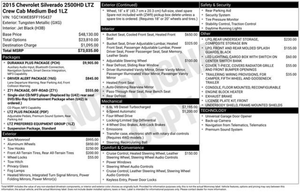 Turn every drive into something special with this Chevrolet Silverado 2500HD from Salt Lake Valley Chevrolet! Designed for comfort, performance, and style, this vehicle comes fully equipped with modern technology and convenience features you’ll love. Plus, enjoy a $1,000 finance savings, already included in the sale price, when you finance through one of our trusted lending partners. If you’re shopping for used cars in Salt Lake City, or searching for the perfect SUV, truck, or sedan, this Chevrolet Silverado 2500HD delivers the dependability and value you’re looking for. It’s the ideal match for your lifestyle - ready for everything from mountain adventures to city commutes. Visit Salt Lake Valley Chevrolet today and see why so many Utah drivers trust us for great deals on quality pre-owned vehicles. Explore our inventory online at www.slvchevy.com or call 801-969-8221 to schedule your test drive today! This impressive vehicle includes Driver Alert Package (Ultrasonic Front & Rear Park Assist), Duramax Plus Package (Bluetooth® For Phone, Engine Block Heater, Radio: AM/FM w/Chevrolet MyLink & Nav, and SiriusXM Satellite Radio), Heavy-Duty Trailering Equipment, LTZ Plus Package (Power-Adjustable Pedals), Off-Road Z71 Package (Hill Descent Control and Z71 Badging), Preferred Equipment Group 1LZ (110-Volt AC Power Outlet, 4.2 Diagonal Color Display Driver Info Center, Auto-Dimming Inside Rear-View Mirror, Chrome Bodyside Moldings, Chrome Door Handles, Chrome Mirror Caps, Color-Keyed Carpeting Floor Covering, Deep-Tinted Glass, Driver & Front Passenger Visors, Dual-Zone Automatic Climate Control, Electric Rear-Window Defogger, Electronic Shift Transfer Case, EZ-Lift & Lower Tailgate, Front Halogen Fog Lamps, Heated Power-Adjustable Outside Mirrors, Integrated Trailer Brake Controller, Leather-Wrapped Steering Wheel, Manual Tilt-Wheel/Telescoping Steering Column, OnStar 4G LTE Wi-Fi Hotspot, OnStar 6 Months Directions/Connections Plan, Power Sliding Rear Window w/Defogger, Power Windows w/Driver Express Up & Down, Rear 60/40 Folding Bench Seat (Folds Up), Rear Vision Camera w/Dynamic Guide Lines, Rear Wheelhouse Liners, Remote Keyless Entry, Remote Vehicle Starter System, Single Slot CD/MP3 Player, Steering Wheel Audio Controls, Theft Deterrent System (Unauthorized Entry), and Universal Home Remote), Standard Suspension Package, 1-Piece Radiator Grille/Front Bumper Opening Cover, 18 Polished Aluminum Wheels, 4-Wheel Disc Brakes, 6 Speakers, ABS brakes, Air Conditioning, Alloy wheels, AM/FM radio: SiriusXM, Auto-dimming door mirrors, Auto-dimming Rear-View mirror, Automatic temperature control, Black Front & Rear Molded Splash Guards (LPO), Bodyside moldings, BOSE Sound w/6 Speaker System, Brake assist, Bumpers: chrome, Camper & 5th Wheel Trailer Wiring Provisions, CD player, Chrome Recovery Hooks, Compass, Delay-off headlights, Driver door bin, Driver vanity mirror, Dual front impact airbags, Dual front side impact airbags, Electronic Stability Control, Emergency communication system: OnStar Directions & Connections, Exhaust Brake, Exterior Parking Camera Rear, Floor Mounted Reconfigurable Console, Front 40/20/40 Split Bench Seat, Front anti-roll bar, Front Center Armrest w/Storage, Front dual zone A/C, Front fog lights, Front Full Feature Bucket Seats, Front License Plate Kit, Front reading lights, Front wheel independent suspension, Fully automatic headlights, Garage door transmitter, Heated & Cooled Front Bucket Seats, Heated door mirrors, Heated Driver & Front Passenger Seats, Heated front seats, Heated Leather Steering Wheel, Illuminated entry, Leather Appointed Seat Trim, LED Cargo Box Lighting, Low tire pressure warning, Manual Tilt-Wheel/Telescoping Steering Col (DISC), Memory seat, Occupant sensing airbag, Outside temperature display, Overhead airbag, Overhead console, Panic alarm, Passenger door bin, Passenger vanity mirror, Power door mirrors, Power driver seat, Power pas