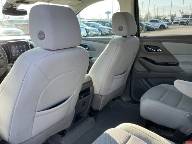 Turn every drive into something special with this Chevrolet Traverse from Salt Lake Valley Chevrolet! Designed for comfort, performance, and style, this vehicle comes fully equipped with modern technology and convenience features youâll love. Plus, enjoy a $1,000 finance savings, already included in the sale price, when you finance through one of our trusted lending partners. If youâre shopping for used cars in Salt Lake City, or searching for the perfect SUV, truck, or sedan, this Chevrolet Traverse delivers the dependability and value youâre looking for. Itâs the ideal match for your lifestyle - ready for everything from mountain adventures to city commutes. Visit Salt Lake Valley Chevrolet today and see why so many Utah drivers trust us for great deals on quality pre-owned vehicles. Explore our inventory online at www.slvchevy.com or call 801-969-8221 to schedule your test drive today! This impressive vehicle includes Driver Confidence II Package (Automatic Emergency Braking, Automatic Heated Steering Wheel, Following Distance Indicator, Forward Collision Alert, Front Pedestrian Braking, IntelliBeam Auto High Beam Control Headlamps, and Lane Keep Assist w/Lane Departure Warning), Front License Plate Bracket Mounting Package, Preferred Equipment Group 1LT, Trailering Equipment (Heavy-Duty Cooling System, Hitch Guidance w/Hitch View, and Trailering Assist Guidelines), 3.49 Axle Ratio, 3rd row seats: split-bench, 4-Wheel Disc Brakes, 6 Speakers, 7-Passenger Seating (2-2-3 Seating Configuration), ABS brakes, Air Conditioning, Alloy wheels, AM/FM radio: SiriusXM, Apple CarPlay/Android Auto, Automatic temperature control, Brake assist, Bumpers: body-color, Compass, Delay-off headlights, Driver door bin, Driver vanity mirror, Dual front impact airbags, Dual front side impact airbags, Electronic Stability Control, Emergency communication system: OnStar and Chevrolet connected services capable, Four wheel independent suspension, Front anti-roll bar, Front Bucket Seats, Front Center Armrest, Front dual zone A/C, Front fog lights, Front reading lights, Fully automatic headlights, Garage door transmitter, Heated door mirrors, Heated front seats, High-Intensity Discharge Headlights, Illuminated entry, Leather steering wheel, Low tire pressure warning, Occupant sensing airbag, Outside temperature display, Overhead airbag, Overhead console, Panic alarm, Passenger door bin, Passenger vanity mirror, Power door mirrors, Power driver seat, Power Liftgate, Power steering, Power windows, Premium Cloth Seat Trim, Radio data system, Radio: Chevrolet Infotainment 3 Plus System, Rear air conditioning, Rear anti-roll bar, Rear reading lights, Rear window defroster, Rear window wiper, Remote keyless entry, Roof rack: rails only, Security system, SiriusXM w/360L, Speed control, Speed-sensing steering, Spoiler, Steering wheel mounted audio controls, Tachometer, Telescoping steering wheel, Tilt steering wheel, Traction control, Trip computer, Turn signal indicator mirrors, Variably intermittent wipers, Voltmeter, and Wheels: 18 Bright Silver Painted Aluminum, offering everything you need for your next adventure.