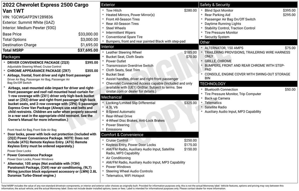 Summit White 2022 Chevrolet Express 2500 Work Van Cargo RWD 8-Speed Automatic with Overdrive 4.3L V6