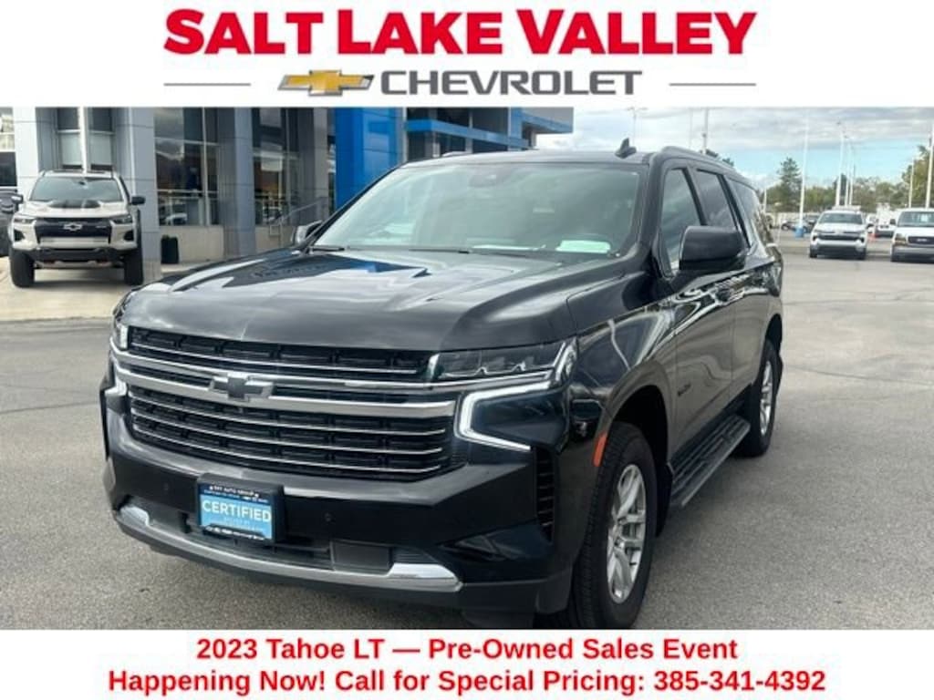 Turn every drive into something special with this Chevrolet Tahoe from Salt Lake Valley Chevrolet! Designed for comfort, performance, and style, this vehicle comes fully equipped with modern technology and convenience features youâll love. Plus, enjoy a $1,000 finance savings, already included in the sale price, when you finance through one of our trusted lending partners. If youâre shopping for used cars in Salt Lake City, or searching for the perfect SUV, truck, or sedan, this Chevrolet Tahoe delivers the dependability and value youâre looking for. Itâs the ideal match for your lifestyle - ready for everything from mountain adventures to city commutes. Visit Salt Lake Valley Chevrolet today and see why so many Utah drivers trust us for great deals on quality pre-owned vehicles. Explore our inventory online at www.slvchevy.com or call 801-969-8221 to schedule your test drive today! This impressive vehicle includes Advanced Trailering Package (Hitch Guidance w/Hitch View, Integrated Trailer Brake Controller, and Smart Trailer Integration Indicator), Driver Alert Package (Lane Change Alert w/Side Blind Zone Alert and Rear Cross Traffic Alert), License Plate Front Mounting Package, Luxury Package (2nd Row Pwr Release 60/40 Split-Folding Bench Seat, 3rd Row 60/40 Power-Folding Split-Bench Seat, HD Surround Vision, Heated 2nd Row Outboard Seats, Heated Steering Wheel, Memory Settings, Outside Heated Power-Adjustable Mirrors, Power Tilt & Telescopic Steering Column, and Rear Pedestrian Alert), Max Trailering Package (2-Speed Active Electronic AutoTrac Transfer Case and Extra Capacity Cooling System), Preferred Equipment Group 1LT (1st & 2nd Row Color-Keyed Carpeted Floor Mats, Auto-Dimming Inside Rear-View Mirror, Bose 9-Speaker Stereo Audio System Feature, Bright Front & Rear Door Sill Plates, Color-Keyed Carpeting Floor Covering, Driver & Front Outboard Passenger Airbags, Enhanced Driver Information Center, Floor Console w/Storage Area, Hands-Free Rear Power Programmable Liftgate, Infotainment Display, LED Daytime Running Lamps, Memory Settings for Driver, Remote Start, SiriusXM Radio w/360L, Universal Home Remote, Wireless Charging, and Wrapped Steering Wheel), 1.5 kW Heater/Defrost Air System, 10-Way Power Driver & Passenger Seat Adjusters, 250-Amp Alternator, 3.23 Rear Axle Ratio, 3rd row seats: split-bench, 4-Wheel Disc Brakes, 850 Cold-Cranking Amps Battery, 9 Speakers, ABS brakes, Air Conditioning, Alloy wheels, AM/FM radio: SiriusXM with 360L, Apple CarPlay/Android Auto, Auto High-beam Headlights, Auto-dimming Rear-View mirror, Automatic temperature control, Black Name Plates (LPO), Brake assist, Bumpers: body-color, Compass, Delay-off headlights, Diesel B20 Fuel, Driver door bin, Driver vanity mirror, Dual front impact airbags, Dual front side impact airbags, Electronic Stability Control, Emergency communication system: OnStar and Chevrolet connected services capable, Engine Block Heater, Four wheel independent suspension, Front & Rear Black Bowtie Emblems (LPO), Front anti-roll bar, Front Bucket Seats, Front Center Armrest, Front dual zone A/C, Front High-Back Reclining Bucket Seats, Front reading lights, Fully automatic headlights, Garage door transmitter, Heated door mirrors, Heated Driver & Front Passenger Seats, Heated front seats, Illuminated entry, Leather-Appointed Seat Trim, Low tire pressure warning, Memory seat, Molded Splash Guards, Navigation System, Occupant sensing airbag, Outside temperature display, Overhead airbag, Overhead console, Panic alarm, Passenger door bin, Passenger vanity mirror, Power door mirrors, Power driver seat, Power Liftgate, Power passenger seat, Power steering, Power windows, Premium audio system: Chevrolet Infotainment 3 Premium, Premium Smooth Ride Suspension, Radio: Chevrolet Infotainment 3 Premium System, Rain sensing wipers, Rear air conditioning, Rear anti-roll bar, Rear reading lights, Rear seat center armrest, Rear window defro