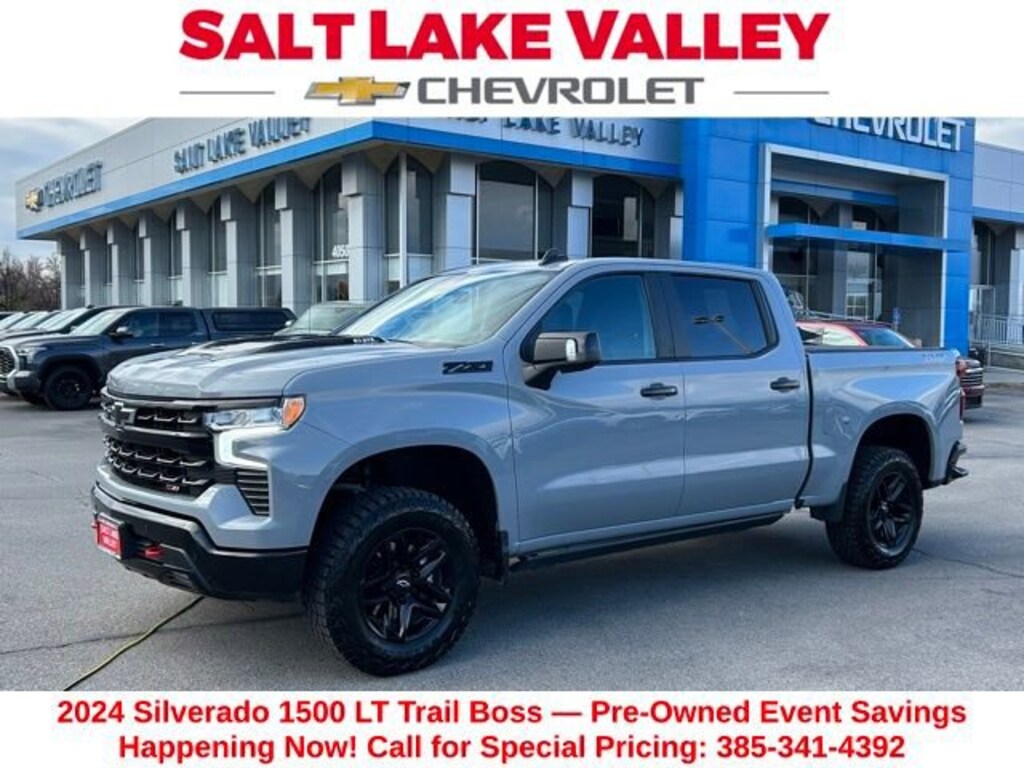 Turn every drive into something special with this Chevrolet Silverado 1500 from Salt Lake Valley Chevrolet! Designed for comfort, performance, and style, this vehicle comes fully equipped with modern technology and convenience features youâll love. Plus, enjoy a $1,000 finance savings, already included in the sale price, when you finance through one of our trusted lending partners. If youâre shopping for used cars in Salt Lake City, or searching for the perfect SUV, truck, or sedan, this Chevrolet Silverado 1500 delivers the dependability and value youâre looking for. Itâs the ideal match for your lifestyle - ready for everything from mountain adventures to city commutes. Visit Salt Lake Valley Chevrolet today and see why so many Utah drivers trust us for great deals on quality pre-owned vehicles. Explore our inventory online at www.slvchevy.com or call 801-969-8221 to schedule your test drive today! This impressive vehicle includes Convenience Package (10-Way Power Driver Seat w/Lumbar, 120-Volt Bed Mounted Power Outlet, 120-Volt Interior Power Outlet, Dual Rear USB Ports (Charge Only), Dual-Zone Automatic Climate Control, Electric Rear-Window Defogger, Heated Driver & Front Outboard Passenger Seats, Heated Steering Wheel, Keyless Open & Start, Remote Vehicle Starter System, Theft Deterrent System (Unauthorized Entry), and Wrapped Steering Wheel), Convenience Package II (Hitch Guidance w/Hitch View, In-Vehicle Trailering System App, Integrated Trailer Brake Controller, Power Sliding Rear Window w/Rear Defogger, Premium Bose 7-Speaker Sound System, and Universal Home Remote), Dark Essentials Package (LPO) (Black Name Plates (LPO)), Leather Package (Leather-Appointed Front Seat Trim), LT Trail Boss Premium Package (Power Tailgate), Preferred Equipment Group 2LT (12.3 Multicolor Reconfigurable Digital Display, 6-Speaker Audio System, All-Weather Floor Liner (LPO) (AAK), Auto-Locking Rear Differential, Bluetooth® For Phone, Chevrolet Connected Access Capable, Color-Keyed Carpeting Floor Covering, Deep-Tinted Glass, Electrical Steering Column Lock, Electronic Cruise Control, EZ Lift Power Lock & Release Tailgate, Front LED Fog Lamps, HD Rear Vision Camera, Heated Power-Adjustable Outside Mirrors, High Gloss Black Mirror Caps, Inside Rear-View Mirror w/Tilt, LED Cargo Area Lighting, OnStar & Chevrolet Connected Services Capable, Performance Red Recovery Hooks, Power Front Windows w/Driver Express Up/Down, Power Front Windows w/Passenger Express Down, Power Rear Windows w/Express Down, Rear 60/40 Folding Bench Seat (Folds Up), SiriusXM w/360L, Standard Tailgate, Steering Wheel Audio Controls, and Wi-Fi Hot Spot Capable), Protection Package (Chevytec Spray-On Black Bedliner and Rear Wheelhouse Liners), Safety Package (HD Surround Vision, Perimeter Lighting, Rear Cross Traffic Braking, Rear Pedestrian Alert, Trailer Camera Provisions, Trailer Side Blind Zone Alert, and Ultrasonic Front & Rear Park Assist), Suspension Package (Heavy-Duty Air Filter and Hill Descent Control), Trailering Package (Hitch Guidance), Up-Level Rear Seat w/Storage Package, 170 Amp Alternator, 2 USB Data Ports, 220 Amp Alternator, 4-Wheel Disc Brakes, 40/20/40 Front Split-Bench Seat, 6 Speakers, ABS brakes, Air Conditioning, Alloy wheels, AM/FM radio: SiriusXM with 360L, Auto High-beam Headlights, Automatic Emergency Braking, Automatic temperature control, Auxiliary External Transmission Oil Cooler, Black Tailgate CHEVROLET Lettering (LPO), Brake assist, Cloth Seat Trim, Compass, Delay-off headlights, Driver door bin, Driver vanity mirror, Dual Active Exhaust, Dual front impact airbags, Dual front side impact airbags, Electronic Stability Control, Electronic Transmission Range Selector Shifter, External Engine Oil Cooler, Floor Mounted Center Console, Following Distance Indicator, Forward Collision Alert, Front anti-roll bar, Front Bucket Seats, Front Center Armrest w/Storage, Front dual zone A/C, Front fog ligh