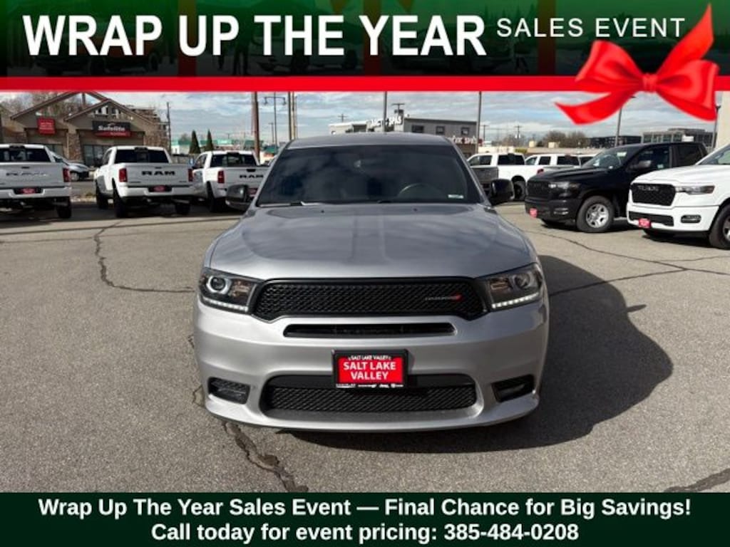 Get ready to hit the road in this Dodge Durango, a standout choice for drivers looking for reliability, performance, and style! This impressive vehicle is packed with premium features designed to make every drive more enjoyable. Plus, youâll enjoy a $1,000 finance savings, already included in the sale price, when you finance through one of our trusted lending partners. Whether youâre searching for used cars in Salt Lake City, a dependable SUV, or a powerful truck, this Dodge Durango delivers everything you need and more. Visit Salt Lake Valley Chrysler Dodge Jeep Ram today to test drive or explore our entire selection of quality pre-owned vehicles. Donât wait - shop online at www.slvcdjr.com or call 801-484-8755 to learn more! This amazing vehicle comes loaded with options like Blacktop Package (Gloss Black Badges, Gloss Black Exterior Mirrors, GT Gloss Black Badging, and Wheels: 20" x 8.0" High Gloss Black Aluminum), Quick Order Package 2BE GT Plus (115V Auxiliary Power Outlet, 180 Amp Alternator, Auto-Dimming Exterior Driver Mirror, Bright Cargo Area Scuff Pads, Bright Front Door Sill Scuff Pads, Dual Remote USB Port - Charge Only, Exterior Mirrors w/Memory, Exterior Mirrors w/Supplemental Signals, Heated Front Seats, Heated Second Row Seats, Heated Steering Wheel, Leather Suede Bucket Seats, Power 6x9 Multi-Function Foldaway Mirrors, Power 8-Way Driver Memory 6-Way Passenger Seats, Power Driver/Passenger 4-Way Lumbar Adjust, Power Liftgate, Radio/Driver Seat/Mirrors Memory, Remote Start System, Security Alarm, and Sun Visors w/Illuminated Vanity Mirrors), Trailer Tow Group IV (7 & 4 Pin Wiring Harness, Class IV Receiver Hitch, Heavy-Duty Engine Cooling, Rear Load Leveling Suspension, and Trailer Brake Control), 3.45 Rear Axle Ratio, 3rd row seats: split-bench, 4-Wheel Disc Brakes, 6 Speakers, ABS brakes, Air Conditioning, Alloy wheels, AM/FM radio: SiriusXM, Anti-whiplash front head restraints, Apple CarPlay, Apple CarPlay/Android Auto, Auto-dimming Rear-View mirror, Automatic temperature control, Blind Spot & Cross Path Detection, Brake assist, Bumpers: body-color, Cloth Low-Back Bucket Seats, Compass, Delay-off headlights, Driver door bin, Driver vanity mirror, Dual front impact airbags, Dual front side impact airbags, Electronic Stability Control, Emergency communication system: Roadside Assistance/9-1-1 Call, Four wheel independent suspension, Front anti-roll bar, Front Bucket Seats, Front Center Armrest w/Storage, Front dual zone A/C, Front fog lights, Front License Plate Bracket, Front reading lights, Fully automatic headlights, Google Android Auto, GPS Antenna Input, Heated door mirrors, Illuminated entry, Integrated Center Stack Radio, Integrated Voice Command w/Bluetooth, Knee airbag, Leather steering wheel, Low tire pressure warning, Manufacturer's Statement of Origin, Occupant sensing airbag, Outside temperature display, Overhead airbag, Overhead console, Panic alarm, ParkView Rear Back-Up Camera, Passenger door bin, Passenger vanity mirror, Power door mirrors, Power driver seat, Power steering, Power windows, Radio: Uconnect 4 w/7" Display, Rear air conditioning, Rear anti-roll bar, Rear reading lights, Rear seat center armrest, Rear window defroster, Rear window wiper, Remote keyless entry, SiriusXM Satellite Radio, Speed control, Speed-Sensitive Wipers, Split folding rear seat, Spoiler, Steering wheel mounted audio controls, Tachometer, Telescoping steering wheel, Tilt steering wheel, Traction control, Trip computer, USB Host Flip, Variably intermittent wipers, and Wheels: 20" x 8.0" Satin Carbon - Design 1, making it the perfect choice for your next adventure. Priced below KBB Fair Purchase Price!