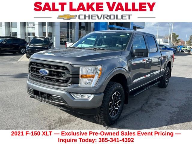 Turn every drive into something special with this Ford F-150 from Salt Lake Valley Chevrolet! Designed for comfort, performance, and style, this vehicle comes fully equipped with modern technology and convenience features youâll love. Plus, enjoy a $1,000 finance savings, already included in the sale price, when you finance through one of our trusted lending partners. If youâre shopping for used cars in Salt Lake City, or searching for the perfect SUV, truck, or sedan, this Ford F-150 delivers the dependability and value youâre looking for. Itâs the ideal match for your lifestyle - ready for everything from mountain adventures to city commutes. Visit Salt Lake Valley Chevrolet today and see why so many Utah drivers trust us for great deals on quality pre-owned vehicles. Explore our inventory online at www.slvchevy.com or call 801-969-8221 to schedule your test drive today! This impressive vehicle includes ABS brakes, Alloy wheels, Compass, Electronic Stability Control, Heated door mirrors, Illuminated entry, Low tire pressure warning, Remote keyless entry, Traction control, 4-Wheel Disc Brakes, 6 Speakers, Air Conditioning, AM/FM radio, Auto High-beam Headlights, Brake assist, Bumpers: chrome, Cloth 40/20/40 Front Seat, Delay-off headlights, Driver door bin, Driver vanity mirror, Dual front impact airbags, Dual front side impact airbags, Emergency communication system: SYNC 4 911 Assist, Exterior Parking Camera Rear, Front anti-roll bar, Front Center Armrest w/Storage, Front fog lights, Front reading lights, Front wheel independent suspension, Fully automatic headlights, Occupant sensing airbag, Outside temperature display, Overhead airbag, Overhead console, Panic alarm, Passenger door bin, Passenger vanity mirror, Power door mirrors, Power steering, Power windows, Radio data system, Radio: AM/FM Stereo w/6 Speakers, Rear reading lights, Rear step bumper, Rear window defroster, Security system, Speed control, Speed-sensing steering, Split folding rear seat, Steering wheel mounted audio controls, SYNC 4, Tachometer, Telescoping steering wheel, Tilt steering wheel, Trip computer, Variably intermittent wipers, Voltmeter, and Wheels: 17 Silver Painted Aluminum, offering everything you need for your next adventure.Odometer is 15132 miles below market average!Awards:* NACTOY 2021 North American Truck of the Year