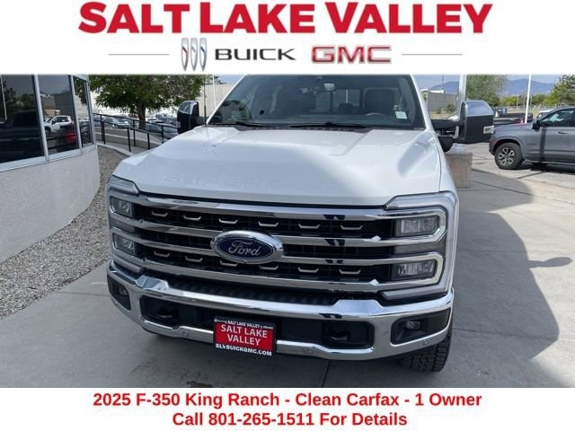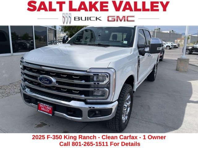 Take your drives to the next level with this Ford F-350SD from Salt Lake Valley Buick GMC! Engineered for a smooth ride, advanced convenience, and lasting dependability, this vehicle is ready to handle everything your day throws at you. Price excludes tax, title, license fee, government fees, and $449 dealer documentary service fee. While every reasonable effort is made to ensure accuracy, we are not responsible for errors or omissions, and vehicles may be sold prior to inquiry please contact the dealer to confirm availability. All financing is subject to approved credit. Looking for quality used cars in Salt Lake City? This Ford F-350SD delivers style, versatility, and value - perfect for daily commutes, family trips, or weekend adventures. Stop by Salt Lake Valley Buick GMC to see this vehicle in person and explore our wide selection of pre-owned cars, trucks, and SUVs. Browse online at www.slvbuickgmc.com or call 801-265-1511 to schedule your test drive today! With 5th Wheel/Gooseneck Hitch Prep Package, Chrome Package, FX4 Off-Road Package (Hill Descent Control, Off-Road Specifically Tuned Shock Absorbers, and Unique FX4 Off-Road Box Decal), Order Code 710A (Flow-Through Console, Radio: B&O Unleashed Sound System by Bang & Olufsen, SiriusXM Radio with 360L, SYNC 4 with Enhanced Voice Recognition, Unique King Ranch Leather 40/Console/40 Seats, and Wheels: 20 Bright Machined Cast Aluminum), 14 Speakers, 4-Wheel Disc Brakes, 410 Amp Dual Alternators, ABS brakes, Adjustable pedals, Air Conditioning, Alloy wheels, AM/FM radio: SiriusXM with 360L, Auto High-beam Headlights, Auto tilt-away steering wheel, Auto-dimming Rear-View mirror, Automatic temperature control, Brake assist, Compass, Delay-off headlights, Driver door bin, Driver vanity mirror, Dual front impact airbags, Dual front side impact airbags, Electronic Stability Control, Emergency communication system: SYNC 4 911 Assist, Engine Block Heater, Front anti-roll bar, Front Bucket Seats, Front Center Armrest, Front dual zone A/C, Front fog lights, Front License Plate Bracket, Front reading lights, Fully automatic headlights, Garage door transmitter, Heads-Up Display, Heated door mirrors, Heated front seats, Heated rear seats, Heated steering wheel, Illuminated entry, Internet access capable: FordPass Connect 5G, Leather steering wheel, LED Roof Clearance Lights, Low tire pressure warning, Memory seat, Navigation System, Outside temperature display, Overhead airbag, Overhead console, Panic alarm, Passenger door bin, Passenger vanity mirror, Pedal memory, Power door mirrors, Power driver seat, Power passenger seat, Power steering, Power windows, Pro Power Onboard - 2kW, Rain sensing wipers, Rapid-Heat Supplemental Cab Heater, Rear reading lights, Rear seat center armrest, Rear step bumper, Rear window defroster, Remote keyless entry, Security system, Speed control, Split folding rear seat, Steering wheel memory, Steering wheel mounted A/C controls, Steering wheel mounted audio controls, Tachometer, Telescoping steering wheel, Tilt steering wheel, Traction control, Trip computer, Turn signal indicator mirrors, Twin Panel Power Moonroof, Upfitter Switches (6), Variably intermittent wipers, and Ventilated front seats designed for convenience and enjoyment, this Ford F-350SD is ready to take you wherever you want to go.