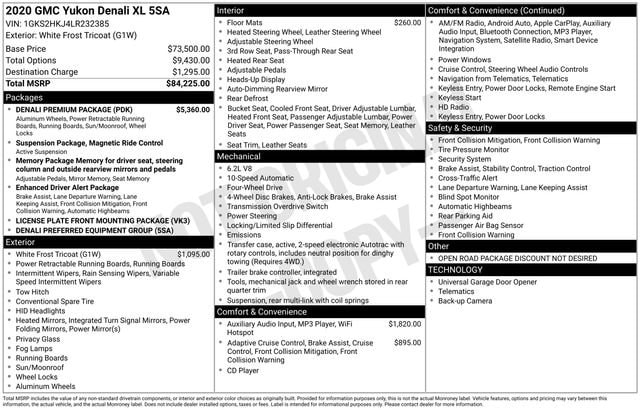Turn every drive into something special with this GMC Yukon XL from Salt Lake Valley Chevrolet! Designed for comfort, performance, and style, this vehicle comes fully equipped with modern technology and convenience features youâll love. Price excludes tax, title, license fee, government fees, and $449 dealer documentary service fee. While every reasonable effort is made to ensure accuracy, we are not responsible for errors or omissions, and vehicles may be sold prior to inquiry please contact the dealer to confirm availability. All financing is subject to approved credit. If youâre shopping for used cars in Salt Lake City, or searching for the perfect SUV, truck, or sedan, this GMC Yukon XL delivers the dependability and value youâre looking for. Itâs the ideal match for your lifestyle - ready for everything from mountain adventures to city commutes. Visit Salt Lake Valley Chevrolet today and see why so many Utah drivers trust us for great deals on quality pre-owned vehicles. Explore our inventory online at www.slvchevy.com or call 801-969-8221 to schedule your test drive today! This impressive vehicle includes Advanced Adaptive Cruise Control (4-Wheel Disc & 4-Wheel VAC Power Antilock Brakes and Automatic Emergency Braking (UGN)), Denali Premium Package (Power Tilt-Sliding Sunroof w/Express-Open/Close, Pwr Retractable Assist Steps w/Perimeter Lighting, Wheel Locks, and Wheels: 22 x 8.5 Bright Aluminum), Enhanced Driver Alert Package (Automatic Emergency Braking, Forward Collision Alert, IntelliBeam Automatic High Beam On/Off, and Lane Keep Assist w/Lane Departure Warning), License Plate Front Mounting Package, Magnetic Ride Control Suspension Package, Memory Package, Open Road Package Discount Not Desired, Preferred Equipment Group 5SA (4-Wheel Antilock Disc Brakes, 5 Auxiliary 12-volt Power Outlets, Black Assist Steps w/Chrome Strip, Bose Active Noise Cancellation, Hands Free Power Programmable Rear Liftgate, Heated Leather-Wrapped Steering Wheel, Inside Rear-View Auto-Dimming Mirror, Integrated Trailer Brake Controller, Lane Change Alert w/Side Blind Zone Alert, Passive Entry System, Power Release 2nd Row Bucket Seats, Power Tilt & Telescopic Steering Column, Power-Adjustable Pedals For Accelerator & Brake, Push Button Keyless Start, Rear Cross Traffic Alert, Remote Keyless Entry, Universal Home Remote, and Wireless Charging), 10 Speakers, 1st & 2nd Rows All-Weather Floor Liner (LPO), 3.23 Rear Axle Ratio, 3rd Row DVD Screen, 3rd row seats: split-bench, 4-Wheel Disc Brakes, ABS brakes, Adaptive suspension, Adjustable pedals, Air Conditioning, Alloy wheels, AM/FM radio: SiriusXM, Apple CarPlay/Android Auto, Auto High-beam Headlights, Auto-dimming door mirrors, Auto-dimming Rear-View mirror, Auto-leveling suspension, Automatic temperature control, Bodyside moldings, Bose Centerpoint Surround Sound Audio System, Brake assist, Bumpers: body-color, CD Player, CD player, Compass, Delay-off headlights, Driver door bin, Driver vanity mirror, Dual front impact airbags, Dual front side impact airbags, Electronic Stability Control, Emergency communication system: OnStar and GMC connected services capable, Exterior Parking Camera Rear, Front anti-roll bar, Front Bucket Seats, Front Center Armrest, Front dual zone A/C, Front fog lights, Front reading lights, Front wheel independent suspension, Full-Feature Reclining Bucket Seats, Fully automatic headlights, Garage door transmitter, Genuine wood console insert, Genuine wood dashboard insert, Genuine wood door panel insert, Heads-Up Display, Heated & Ventilated Driver & Front Passenger Seats, Heated door mirrors, Heated front seats, Heated rear seats, Heated steering wheel, High-Intensity Discharge Headlights, Illuminated entry, Leather Shift Knob, Leather steering wheel, Low tire pressure warning, Memory seat, Navigation System, Occupant sensing airbag, Outside temperature display, Overhead airbag, Overhead console, Panic alarm, Passenger