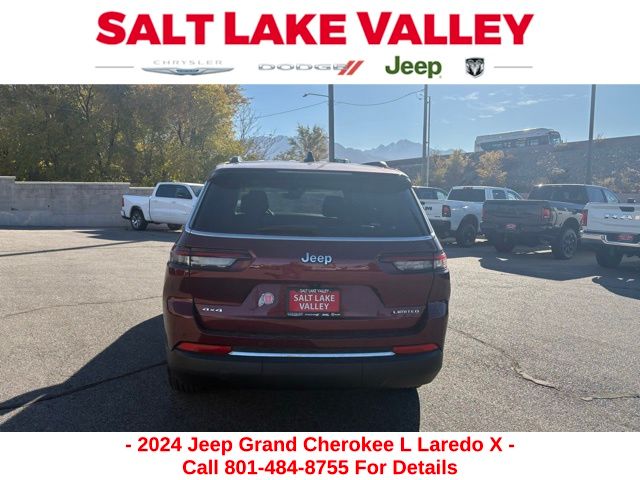 Get ready to hit the road in this Jeep Grand Cherokee L, a standout choice for drivers looking for reliability, performance, and style! This impressive vehicle is packed with premium features designed to make every drive more enjoyable. Plus, youâll enjoy a $1,000 finance savings, already included in the sale price, when you finance through one of our trusted lending partners. Whether youâre searching for used cars in Salt Lake City, a dependable SUV, or a powerful truck, this Jeep Grand Cherokee L delivers everything you need and more. Visit Salt Lake Valley Chrysler Dodge Jeep Ram today to test drive or explore our entire selection of quality pre-owned vehicles. Donât wait - shop online at www.slvcdjr.com or call 801-484-8755 to learn more! This amazing vehicle comes loaded with options like Quick Order Package 23D Laredo X (Laredo X and Power Sunroof), 3.45 Rear Axle Ratio, 3rd row seats: split-bench, 4-Wheel Disc Brakes, 6 Speakers, ABS brakes, Air Conditioning, Alloy wheels, Anti-whiplash front head restraints, Automatic temperature control, Brake assist, Bumpers: body-color, Cloth Seats, Compass, Delay-off headlights, Driver door bin, Driver vanity mirror, Dual front impact airbags, Dual front side impact airbags, Electronic Stability Control, Emergency communication system, Four wheel independent suspension, Front anti-roll bar, Front Bucket Seats, Front Center Armrest w/Storage, Front dual zone A/C, Front License Plate Bracket, Front reading lights, Fully automatic headlights, Heated door mirrors, Illuminated entry, Knee airbag, Low tire pressure warning, Manual Fold Seatbacks, Normal Duty Suspension, Occupant sensing airbag, Outside temperature display, Overhead airbag, Overhead console, Panic alarm, ParkView Rear Back-Up Camera, Passenger door bin, Passenger vanity mirror, Power door mirrors, Power driver seat, Power steering, Power windows, Radio data system, Radio: Uconnect 5 w/8.4" Display, Rear air conditioning, Rear anti-roll bar, Rear reading lights, Rear window defroster, Rear window wiper, Reclining 3rd row seat, Remote keyless entry, Security system, Speed control, Speed-Sensitive Wipers, Split folding rear seat, Spoiler, Steering wheel mounted audio controls, Tachometer, Telescoping steering wheel, Tilt steering wheel, Traction control, Trip computer, Variably intermittent wipers, Voltmeter, and Wheels: 18" x 8.0" Fully Painted Aluminum, making it the perfect choice for your next adventure. Priced below KBB Fair Purchase Price!