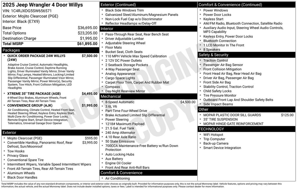This 2025 Jeep Wrangler Willys is a true icon of off-road capability, blending rugged performance with modern conveniences. With only 1,200 miles, this like-new vehicle is a rare find, offering exceptional value and the opportunity to own a piece of Jeep's legendary legacy.