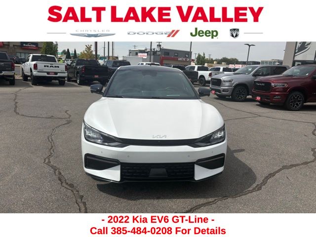 Get ready to hit the road in this Kia EV6, a standout choice for drivers looking for reliability, performance, and style! This impressive vehicle is packed with premium features designed to make every drive more enjoyable. Plus, youâll enjoy a $1,000 finance savings, already included in the sale price, when you finance through one of our trusted lending partners. Whether youâre searching for used cars in Salt Lake City, a dependable SUV, or a powerful truck, this Kia EV6 delivers everything you need and more. Visit Salt Lake Valley Chrysler Dodge Jeep Ram today to test drive or explore our entire selection of quality pre-owned vehicles. Donât wait - shop online at www.slvcdjr.com or call 801-484-8755 to learn more! This amazing vehicle comes loaded with options like 14 Speakers, 4-Wheel Disc Brakes, ABS brakes, Air Conditioning, Alloy wheels, AM/FM radio: SiriusXM, Apple CarPlay & Android Auto, Auto High-beam Headlights, Auto-dimming Rear-View mirror, Automatic temperature control, Axle Ratio: 10.650, Brake assist, Bumpers: body-color, Carpeted Floor Mats, Delay-off headlights, Driver door bin, Driver vanity mirror, Dual front impact airbags, Dual front side impact airbags, Electronic Stability Control, Emergency communication system, Four wheel independent suspension, Front anti-roll bar, Front Bucket Seats, Front Center Armrest, Front dual zone A/C, Front reading lights, Fully automatic headlights, Garage door transmitter: HomeLink, Heads-Up Display, Heated & Ventilated Front Bucket Seats, Heated door mirrors, Heated front seats, Illuminated entry, Knee airbag, Low tire pressure warning, Memory seat, Navigation system: AVN 5.0 Navigation System, Occupant sensing airbag, Outside temperature display, Overhead airbag, Overhead console, Panic alarm, Passenger door bin, Passenger vanity mirror, Power door mirrors, Power driver seat, Power Liftgate, Power moonroof, Power passenger seat, Power steering, Power windows, Radio: Meridian Premium Audio System, Rain sensing wipers, Rear anti-roll bar, Rear seat center armrest, Rear window defroster, Remote keyless entry, Security system, Smart Key w/ Push Button and Remote Start, Speed control, Speed-sensing steering, Split folding rear seat, Spoiler, Sport steering wheel, Steering wheel mounted audio controls, Telescoping steering wheel, Tilt steering wheel, Traction control, Trip computer, Turn signal indicator mirrors, Variably intermittent wipers, Vegan Leather Seat Trim, Ventilated front seats, and Wheels: 7.5J x 19" Black Painted Alloy, making it the perfect choice for your next adventure.