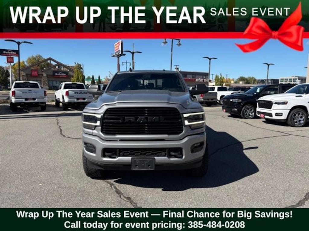 Get ready to hit the road in this Ram 2500, a standout choice for drivers looking for reliability, performance, and style! This impressive vehicle is packed with premium features designed to make every drive more enjoyable. Plus, youâll enjoy a $1,000 finance savings, already included in the sale price, when you finance through one of our trusted lending partners. Whether youâre searching for used cars in Salt Lake City, a dependable SUV, or a powerful truck, this Ram 2500 delivers everything you need and more. Visit Salt Lake Valley Chrysler Dodge Jeep Ram today to test drive or explore our entire selection of quality pre-owned vehicles. Donât wait - shop online at www.slvcdjr.com or call 801-484-8755 to learn more! This amazing vehicle comes loaded with options like Cold Weather Group (Engine Block Heater and Winter Front Grille Cover), Laramie Level 1 Equipment Group (Auto High Beam Headlamp Control, Blind Spot & Cross Path Detection, Exterior Mirrors w/Memory, Foam Bottle Insert (Door Trim Panel), Mirror-Mounted Aux Reverse Lamps, Power Adjustable Convex Aux Mirrors, Power Adjustable Pedals w/Memory, Pwr Convenience Chrome Tow Mirrors w/Spotter & Memory, Radio/Driver Seat/Mirrors/Pedals Memory, Rain Sensitive Windshield Wipers, Remote Tailgate Release, and Ventilated Front Seats), Night Edition (Black Exterior Mirrors, Black Exterior Truck Badging, Black Headlamp Bezels, Black Interior Accents, Black RAM Head Tailgate Badge, Black Tail Lamp Bezels, Black Wheel Center Hub, Body Color Door Handles, Body Color Grille Surround, Gloss Black Grille Billets/Accents, Painted Front Bumper, Painted Rear Bumper, Pwr Convenience Black Tow Mirrors w/Spotter & Memory, and Wheels: 20" x 8.0" Black Painted Aluminum), Off Road Package (Front Performance Tuned Shock Absorbers, Hill Descent Control, Off Road Decal, and Rear Performance Tuned Shock Absorbers), Quick Order Package 2HH Laramie, Towing Technology Group (Center Stop Lamp w/Cargo View Camera, Surround View Camera System, and Trailer Reverse Guidance), #1 Seat Foam Cushion, 10 Speakers, 115V Auxiliary Rear Power Outlet, 12" Touchscreen Display, 2 Way Rear Headrest Seat, 220 Amp Alternator, 3.73 Axle Ratio, 4 Way Front Headrests, 4-Wheel Disc Brakes, 400W Inverter, 8.4" Touchscreen Display, ABS brakes, Active Noise Control System, Adjustable pedals, Air Conditioning, Alloy wheels, AM/FM radio: SiriusXM, Anti-Spin Differential Rear Axle, Apple CarPlay, Apple CarPlay/Android Auto, Auto-dimming Rear-View mirror, Automatic temperature control, Brake assist, Bumpers: chrome, Center Hub, Compass, Delay-off headlights, Driver door bin, Driver vanity mirror, Dual front impact airbags, Dual front side impact airbags, Electronic Stability Control, Electronically Controlled Throttle, Front anti-roll bar, Front Center Armrest w/Storage, Front dual zone A/C, Front fog lights, Front reading lights, Front Seat Back Map Pockets, Fully automatic headlights, Garage door transmitter, Google Android Auto, GPS Antenna Input, Heated door mirrors, Heated Front Seats, Heated front seats, Heated Steering Wheel, Heated steering wheel, High Back Seats, Illuminated entry, Integrated Center Stack Radio, Integrated Voice Command w/Bluetooth, Leather steering wheel, Leather Trim 40/20/40 Bench Seat, LED Bed Lighting, Low tire pressure warning, Manufacturer's Statement of Origin, Occupant sensing airbag, Outside temperature display, Overhead airbag, Overhead console, Panic alarm, ParkView Rear Back-Up Camera, Passenger door bin, Passenger vanity mirror, Power 2-Way Driver Lumbar Adjust, Power 2-Way Passenger Lumbar Adjust, Power Adjust 8-Way Driver Seat, Power Adjust 8-Way Front Passenger Seat, Power door mirrors, Power driver seat, Power passenger seat, Power steering, Power Sunroof, Power windows, Radio data system, Radio: Uconnect 12 w/Navigation, Radio: Uconnect 4 w/8.4" Display, Rear 60/40 Folding Seat, Rear anti-roll bar, Rear reading lights, Rear seat center armrest, Rear step bumper, Rear window defr