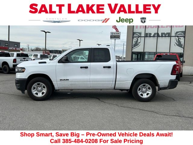 Get ready to hit the road in this Ram 1500, a standout choice for drivers looking for reliability, performance, and style! This impressive vehicle is packed with premium features designed to make every drive more enjoyable. Plus, youâll enjoy a $1,000 finance savings, already included in the sale price, when you finance through one of our trusted lending partners. Whether youâre searching for used cars in Salt Lake City, a dependable SUV, or a powerful truck, this Ram 1500 delivers everything you need and more. Visit Salt Lake Valley Chrysler Dodge Jeep Ram today to test drive or explore our entire selection of quality pre-owned vehicles. Donât wait - shop online at www.slvcdjr.com or call 801-484-8755 to learn more! This amazing vehicle comes loaded with options like Quick Order Package 23A Tradesman, Tradesman Level 1 Equipment Group (3 Rear Seat Head Restraints, 4 Way Front Headrests, 40/20/40 Split Bench Seat, Cloth Bench Seat, Front & Rear Floor Mats, Front Center Seat Cushion Storage, Front Seat Back Map Pockets, Manual Adjust 4-Way Driver Seat, Manual Adjust 4-Way Front Passenger Seat, Rear 60/40 Folding Seat, Rear Power Sliding Window, Seat Parts Module II, and SiriusXM Satellite Radio), 4-Wheel Disc Brakes, 6 Speakers, ABS brakes, Air Conditioning, AM/FM radio, Apple CarPlay/Android Auto, Auto High-beam Headlights, Black Exterior Mirrors, Brake assist, Compass, Delay-off headlights, Driver door bin, Dual front impact airbags, Dual front side impact airbags, Electronic Stability Control, Exterior Mirrors w/Heating Element, Front anti-roll bar, Front Center Armrest, Front License Plate Bracket, Front reading lights, Front wheel independent suspension, Fully automatic headlights, Heated door mirrors, Heavy Duty Vinyl 40/20/40 Split Bench Seat, Illuminated entry, Low tire pressure warning, Manual Folding Exterior Mirrors, Occupant sensing airbag, Outside temperature display, Overhead airbag, Overhead console, Panic alarm, ParkView Rear Back-Up Camera, Passenger door bin, Passenger vanity mirror, Power door mirrors, Power steering, Power windows, Radio data system, Radio: Uconnect 5 w/8.4" Display, Rear anti-roll bar, Rear step bumper, Remote keyless entry, Speed control, Supplier Part Tracking (J-1), Tachometer, Telescoping steering wheel, Tilt steering wheel, Traction control, Trailer Brake Control, Variably intermittent wipers, Voltmeter, and Wheels: 18" x 7.5" Steel Painted, making it the perfect choice for your next adventure.