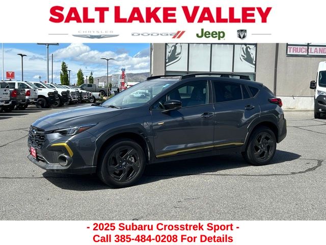 Get ready to hit the road in this Subaru Crosstrek, a standout choice for drivers looking for reliability, performance, and style! This impressive vehicle is packed with premium features designed to make every drive more enjoyable. Price excludes tax, title, license fee, government fees, and $449 dealer documentary service fee. While every reasonable effort is made to ensure accuracy, we are not responsible for errors or omissions, and vehicles may be sold prior to inquiryâ"please contact the dealer to confirm availability. All financing is subject to approved credit. Whether youâre searching for used cars in Salt Lake City, a dependable SUV, or a powerful truck, this Subaru Crosstrek delivers everything you need and more. Visit Salt Lake Valley Chrysler Dodge Jeep Ram today to test drive or explore our entire selection of quality pre-owned vehicles. Donât wait - shop online at www.slvcdjr.com or call 801-484-8755 to learn more! This amazing vehicle comes loaded with options like BSD/RCTA & Power Driver Seat & Power Moonroof (10-Way Power Driver's Seat, Blind Spot Detection (BSD), Power Moonroof, and Rear Cross-Traffic Alert (RCTA) System), 4-Wheel Disc Brakes, 6 Speakers, ABS brakes, Air Conditioning, Alloy wheels, AM/FM radio: SiriusXM, Anti-whiplash front head restraints, Auto High-beam Headlights, Automatic temperature control, Brake assist, Bumpers: body-color, Driver door bin, Driver vanity mirror, Dual front impact airbags, Dual front side impact airbags, Electronic Stability Control, Emergency communication system, Exterior Parking Camera Rear, Four wheel independent suspension, Front anti-roll bar, Front Bucket Seats, Front Center Armrest, Front dual zone A/C, Front fog lights, Front reading lights, Fully automatic headlights, Heated door mirrors, Heated Front Bucket Seats, Heated front seats, Illuminated entry, Knee airbag, Leather Shift Knob, Leather steering wheel, Low tire pressure warning, Occupant sensing airbag, Outside temperature display, Overhead airbag, Overhead console, Panic alarm, Passenger door bin, Passenger vanity mirror, Power door mirrors, Power steering, Power windows, Radio data system, Radio: Subaru 11.6" Multimedia Plus System, Rear anti-roll bar, Rear seat center armrest, Rear window defroster, Rear window wiper, Remote keyless entry, Security system, Speed control, Speed-sensing steering, Split folding rear seat, Spoiler, Sport Cloth Upholstery, Steering wheel mounted audio controls, Tachometer, Telescoping steering wheel, Tilt steering wheel, Traction control, Trip computer, Turn signal indicator mirrors, Variably intermittent wipers, and Wheels: 18" x 7.0" J Dark Gray Aluminum-Alloy, making it the perfect choice for your next adventure.