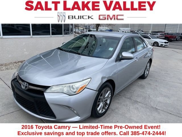 Take your drives to the next level with this Toyota Camry from Salt Lake Valley Buick GMC! Engineered for a smooth ride, advanced convenience, and lasting dependability, this vehicle is ready to handle everything your day throws at you. Plus, enjoy a $1,000 finance savings, already included in the sale price, when you finance through one of our trusted lending partners. Looking for quality used cars in Salt Lake City? This Toyota Camry delivers style, versatility, and value - perfect for daily commutes, family trips, or weekend adventures. Stop by Salt Lake Valley Buick GMC to see this vehicle in person and explore our wide selection of pre-owned cars, trucks, and SUVs. Browse online at www.slvbuickgmc.com or call 801-265-1511 to schedule your test drive today! With 4-Wheel Disc Brakes, 6 Speakers, 7.0J x 17 Alloy Wheels, ABS brakes, Air Conditioning, Alloy wheels, AM/FM radio, Brake assist, Bumpers: body-color, CD player, Delay-off headlights, Driver door bin, Driver vanity mirror, Dual front impact airbags, Dual front side impact airbags, Electronic Stability Control, Exterior Parking Camera Rear, Fabric Seat Trim, Four wheel independent suspension, Front anti-roll bar, Front Bucket Seats, Front Center Armrest, Front reading lights, Fully automatic headlights, Heated door mirrors, Illuminated entry, Knee airbag, Leather steering wheel, Low tire pressure warning, Occupant sensing airbag, Outside temperature display, Overhead airbag, Overhead console, Panic alarm, Passenger door bin, Passenger vanity mirror, Power door mirrors, Power driver seat, Power steering, Power windows, Radio: Entune Audio, Radio: Entune Audio Plus, Rear anti-roll bar, Rear seat center armrest, Rear side impact airbag, Rear window defroster, Remote keyless entry, Speed control, Speed-sensing steering, Split folding rear seat, Spoiler, Sport steering wheel, Steering wheel mounted audio controls, Tachometer, Telescoping steering wheel, Tilt steering wheel, Traction control, Trip computer, and Variably intermittent wipers designed for convenience and enjoyment, this Toyota Camry is ready to take you wherever you want to go.25/35 City/Highway MPGAwards:* 2016 KBB.com 10 Best Sedans Under $25,000 * 2016 KBB.com 5-Year Cost to Own Awards * 2016 KBB.com 10 Most Comfortable Cars Under $30,000 * 2016 KBB.com 10 Most Awarded Cars * 2016 KBB.com 10 Best Used Cars Under $15,000 * 2016 KBB.com Best Buy Awards Finalist * 2016 KBB.com 10 Best UberX Candidates